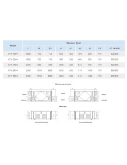 Centrale CFH HE są wyposażone w nagrzewnicę elektryczną do dodatkowego podgrzewania nawiewanego powietrza za rekuperatorem. Nagrzewnica montowana na kanale za centralą. Centrale CFH HW są wyposażone w nagrzewnicę wodną do dodatkowego podgrzewania nawiewanego powietrza za rekuperatorem. Nagrzewnica montowana na kanale za centralą. Centrale CFH nie mają wbudowanej nagrzewnicy elektrycznej, ale w razie potrzeby istnieje możliwość nabycia nagrzewnicy osobno.