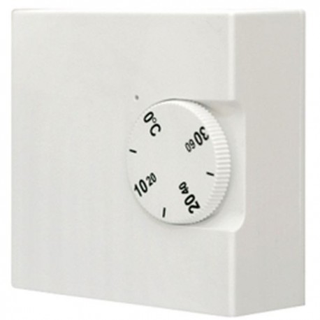 Elektroniczny termostat pomieszczeniowy z wbudowanym czujnikiem przeznaczony do sterowania ogrzewaniem lub chłodzeniem. Montaż natynkowy. Zakres pracy od 0 do 30°C lub od 0 do 60°C wybierany jest przy podłączeniu, przy pomocy zworki wewnątrz urządzenia. Możliwość podłączenia zewnętrznego kanałowego czujnika temperatury typu TJ-K10K – 10K/°C (do nabycia osobno). Podłączenie zewnętrznego czujnika wykrywane jest automatycznie po uruchomieniu termostatu. Zmiana wartości histerezy w zakresie 1...3°C odbywa się przy pomocy wbudowanego potencjometru. Napięcie zasilania 230VAC, IP20, klasa izolacji II. Termostat posiada bezpotencjałowy styk przełączajacy 6A/230VAC (6A dotyczy obciążenia rezystancyjnego). Po uruchomieniu urządzenie sygnalizuje stan pracy diodą LED. W okresie 4 sekund jeden błysk wskaźnika oznacza, że poprawnie pracuje czujnik wewnętrzny. Dwa błyski wskaźnika oznaczają wykrycie i poprawną pracę czujnika zewnętrznego. Awarię gdy dioda świeci światłem ciągłym.