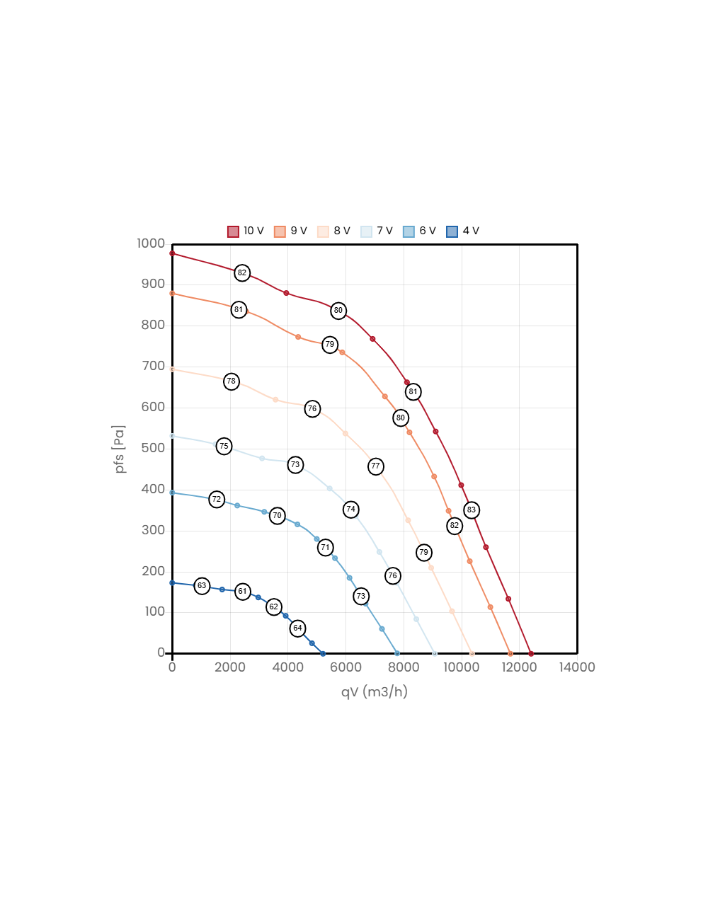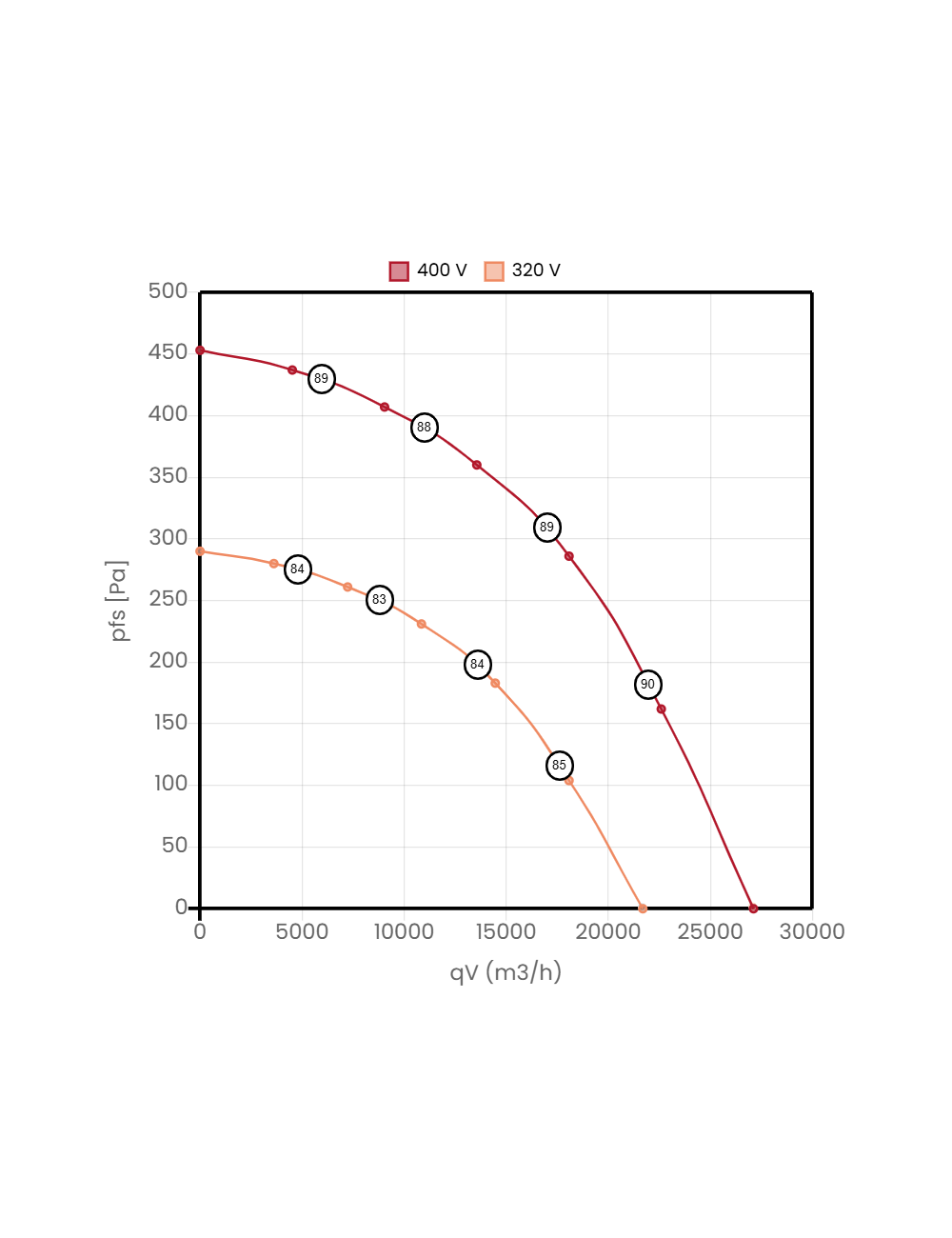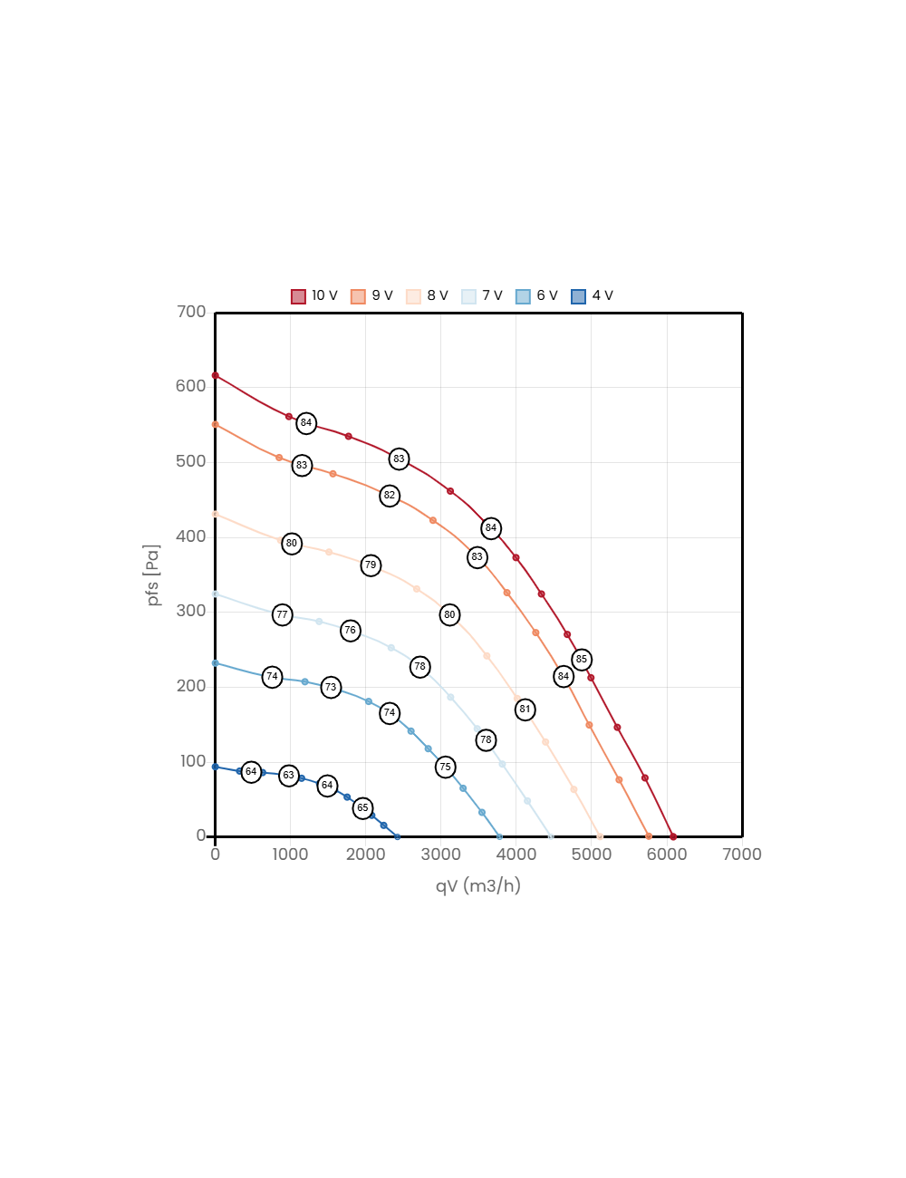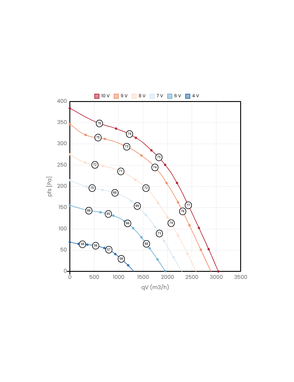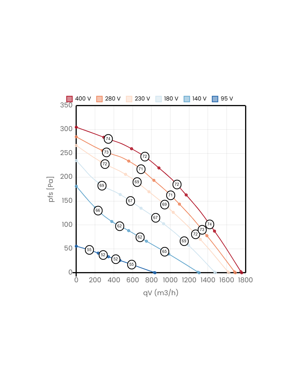 Temperatura medium przepływającego przez wentylator nie może przekraczać 100oC dla napięcia znamionowego oraz 80oC dla napięcia obniżonego (regulacja obrotów).