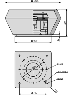 Wyposażona jest w podstawę ze zintegrowaną dyszą wlotową z ocynkowanej blachy stalowej. Osłonę silnika w postaci kosza, będącego zabezpieczeniem przed dotykiem bezpośrednim, stanowią stalowe pręty pokryte powłoką z tworzywa sztucznego.