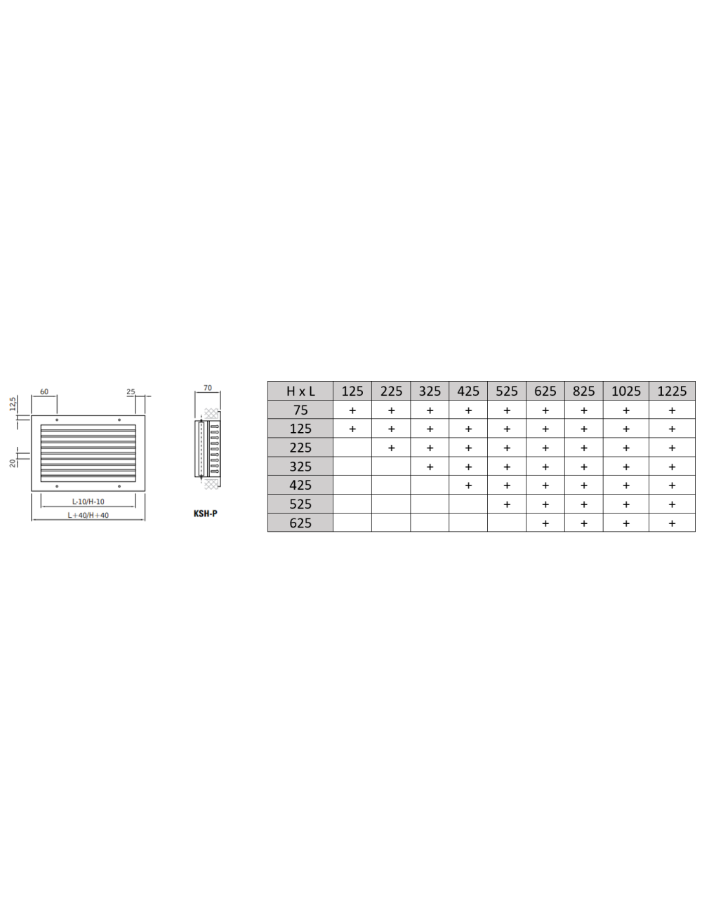 Kratka wentylacyjna jednorzędowa KSH P to trwałe i estetyczne rozwiązanie do nawiewu i wywiewu powietrza w instalacjach nisko- i średniociśnieniowych. Przeznaczona do pracy w środowisku nieagresywnym (wilgotność do 70%), znajduje zastosowanie w budynkach mieszkalnych i użyteczności publicznej.