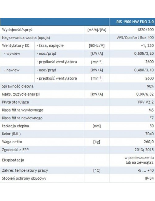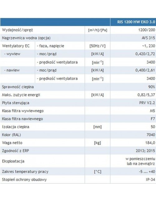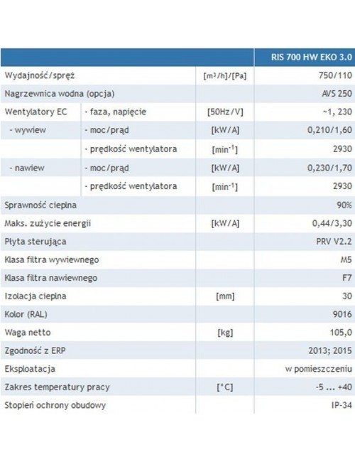 Centrale wentylacyjne RIS EKO wyposażone są w wysokowydajny przeciwprądowy wymiennik ciepła.