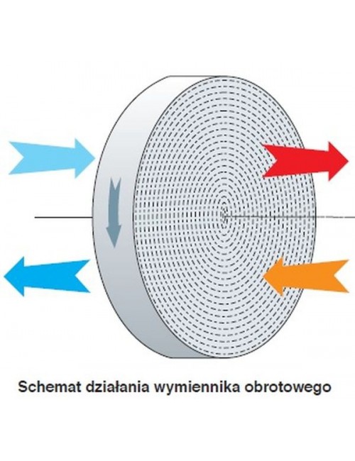 Obrotowy wymiennik ciepła jest obracającym się walcem, wypełnionym wewnątrz falistą taśmą aluminiową rozmieszczoną w taki sposób, aby strumienie powietrza nawiewanego i wywiewanego przechodząc przez rekuperator nie wchodził w sobą w bezpośredni kontakt. Podczas rotacji przez wnętrze wymiennika przechodzi najpierw powietrze nawiewane, następnie - zużyte powietrze z pomieszczeń. W wyniku tego procesu taśma aluminiowa jest cyklicznie ogrzewana i schładzana z każdym obrotem i w rezultacie przekazuje ciepło i wilgotność zużytego powietrza strumieniowi napływającemu z zewnątrz. Zaletą wymiennika rotacyjnego w porównaniu z płytowym, jest wyższa efektywność, stałe utrzymanie wilgotności w pomieszczeniu oraz bardzo niskie ryzyko zamarznięcia (prawie niemożliwe ze względu na średnią temperaturę we wnętrzu wymiennika oraz poziom wilgotności).