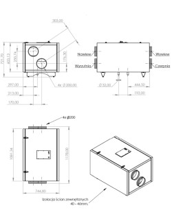 OBUDOWA - wykonana w całości ze stali malowanej proszkowo, zaizolowana. Charakteryzuje się doskonałymi właściwościami tłumienia drgań, hałasu.