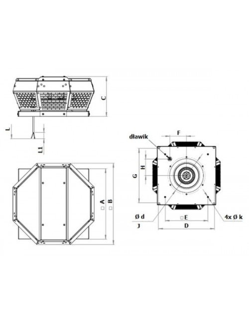 Dachowy wentylator promieniowy z wyrzutem poziomym. Konstrukcja wentylatora składa się z niskoprofilowanej obudowy zaprojektowanej w kształcie ośmiokąta, która redukuje straty ciśnienia przepływającego strumienia powietrza, oraz kwadratowej płyty montażowej wykonanej z galwanizowanej blachy stalowej. Modele VIVO.P wyposażone w zintegrowany na obudowie wyłącznik serwisowy. Obudowa została wykonana z wysokiej klasy aluminium odpornego na działanie czynników atmosferycznych (AlMg3). Konstrukcja wentylatora umożliwia bezproblemowy montaż na podstawie dachowej lub cokole murowanym jak również wykonanie niezbędnych czynności serwisowych bez konieczności demontażu całego urządzenia (dostęp do korpusu silniko-wirnika uzyskuje się po odkręceniu kilku śrub mocujących obudowę do płyty montażowej).