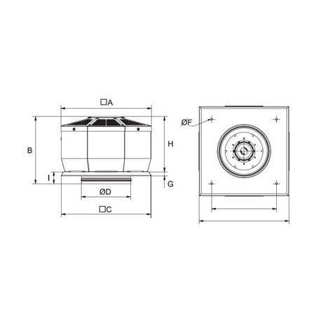 Wielkości 355-560 nie posiadają króćca, by podłączyć przewód należy stosować złącza P i króćce K. Wentylatory przystosowane do pracy w pozycji pionowej, na dachach płaskich, po zastosowaniu odpowiednich podstaw dachowych RS mogą być montowane na dachach pochyłych.