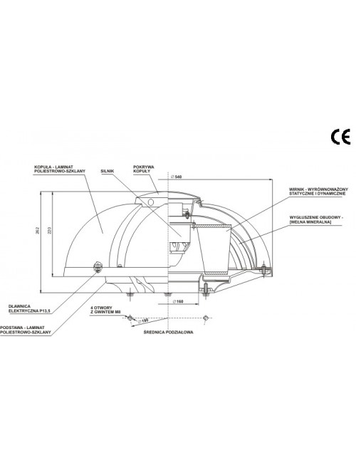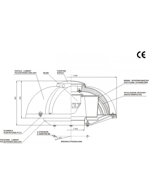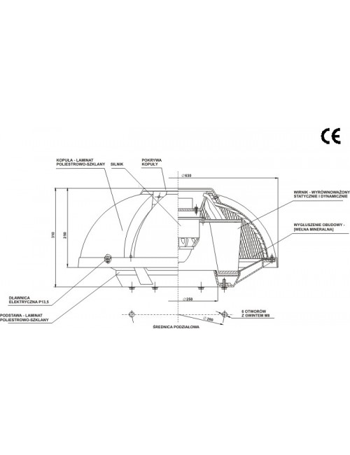 Główne elementy konstrukcyjne (obudowa, kopuła, koło wirnikowe) wykonywane są z kompozytów poliestrowo-szklanych. Zastosowanie kompozytów oparych na żywicach zbrojonych włóknem szklanym zapewnia konstrukcji dużą wytrzymałość mechaniczną oraz odporność na oddziaływanie atmosferyzne i chemiczne. Powierzchnie elementów obudowy wykończone są warstwą żelkotu barwionego wg kolorów podstawowych palety RAL. Odporność żelkotów na promieniowanie UV zapewnia estetyczny wygląd w okresie wieloletniego użytkowania.