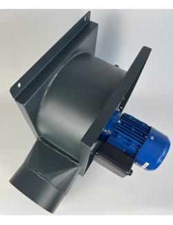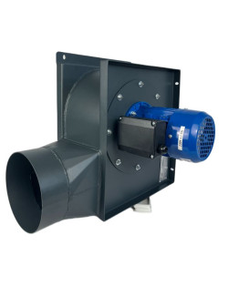 Wentylator promieniowy przeznaczony do montażu w instalacjach wyciągowych kuchni przemysłowych, z silnikiem umieszczonym poza przepływem powietrza.