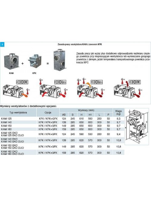 Zasada pracy jak wyżej plus dodatkowo odprowadzenie nadmiaru ciepłego powietrza przy niepracującym wentylatorze lub wymieszanie gorącego powietrza z zimnym, jeżeli temperatura transportowanego powietrza przekracza 90°C.